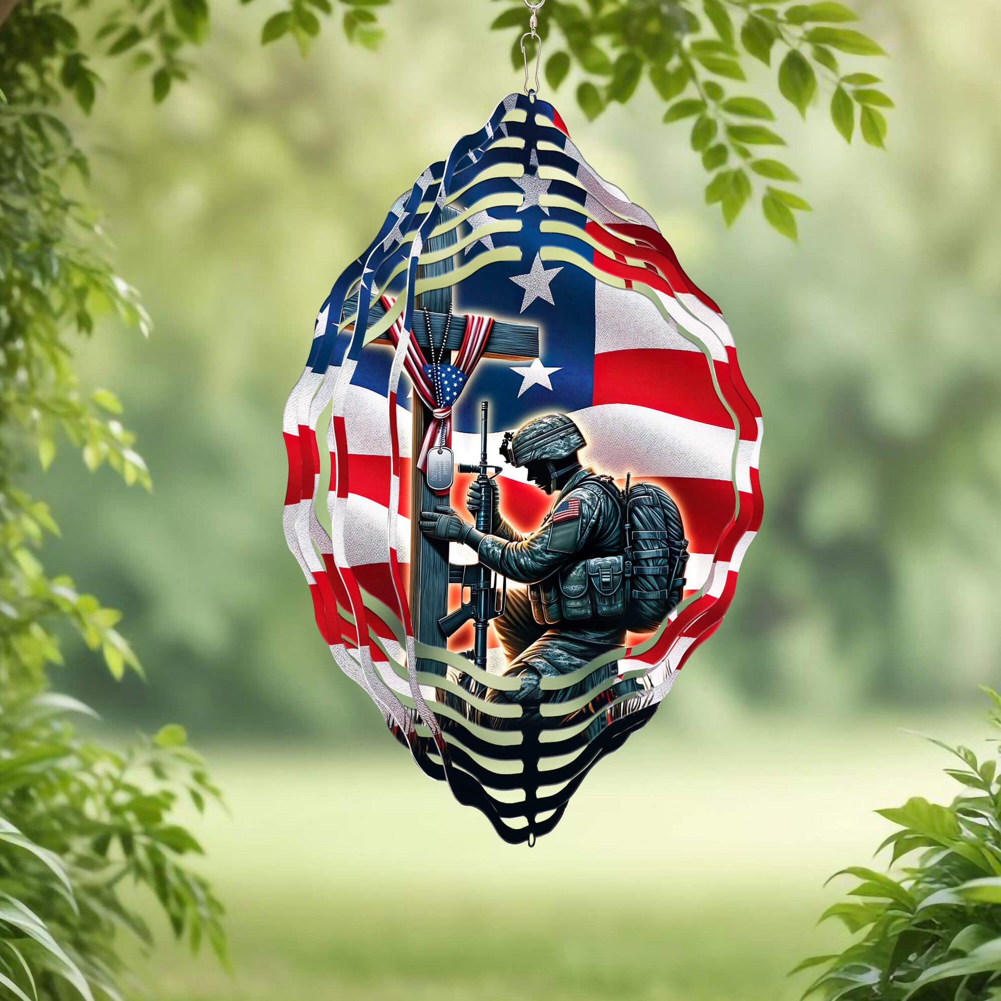 Stand For The Flag, Veteran Christian Cross Memorial Wind Spinner TPT1608WS